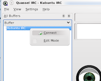 Back at the main window, right-click on the server listed under Buffer, in this case Kubuntu IRC. Click on Connect.
